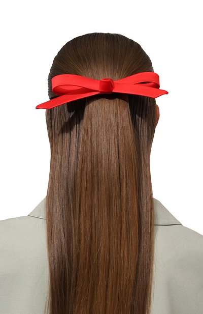Бант из денима украшен цветочным орнаментом из кристаллов и бисера. Аксессуар дополнен металлической заколкой-автоматом с защитной силиконовой накладкой.