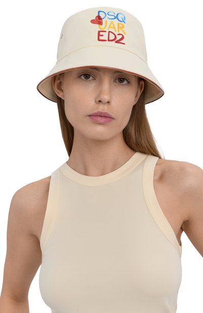 Панаму с высокой тульей связали крючком из синтетической рафии. Ажурный аксессуар с фестончатым кантом украсили фирменной нашивкой на полях.