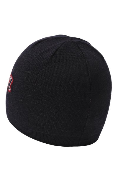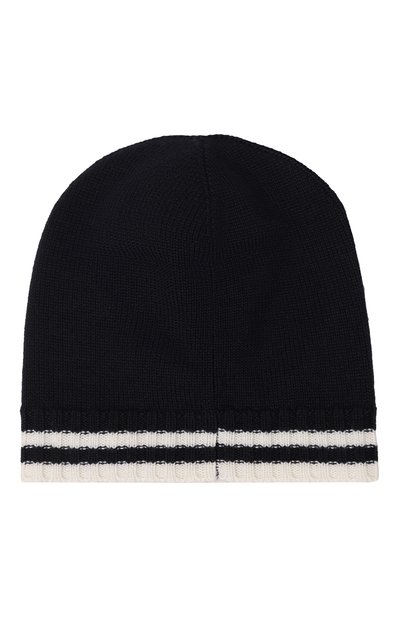 Шапку бини с жаккардовым узором PB Labyrinth связали из шерстяной пряжи. Модель дополнили широкой полосатой манжетой в рубчик.