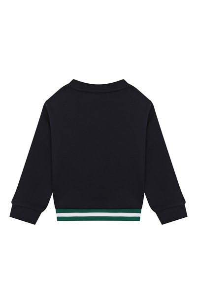 Свитшот с отделкой в рубчик выполнили из трикотажа на основе органического хлопка, сертифицированного GOTS. Спереди модель с кнопками на плече декорировали логотипом марки и принтом Earth Friends.