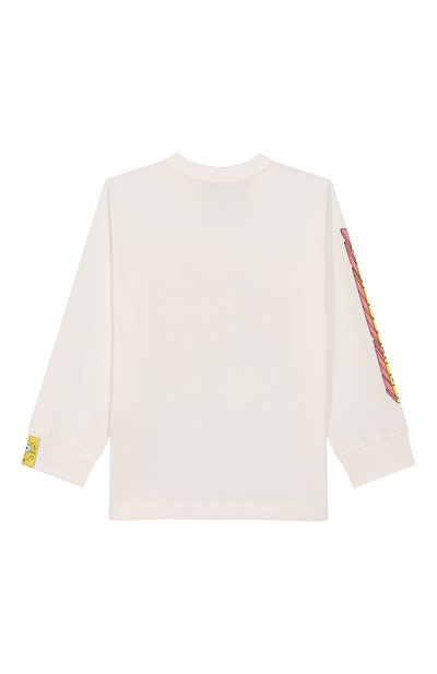 Лонгслив с круглой горловиной и манжетами в рубчик сшили из джерси на основе органического хлопка, сертифицированного GOTS. Модель украсили принтом Earth Friends спереди и надписью Being kind is cool на спинке.