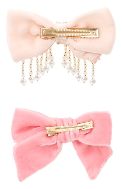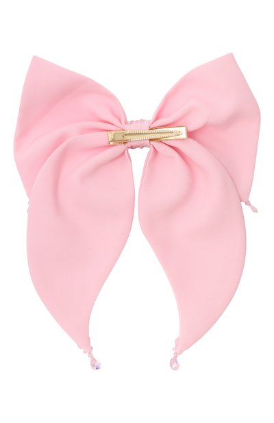 Заколку-бант, украшенную бусинами в тон, выполнили из текстиля. Объемный аксессуар крепится к волосам с помощью зубчатого зажима.