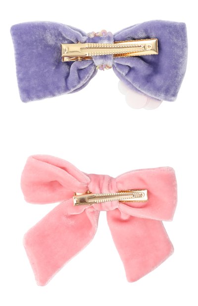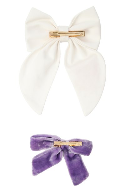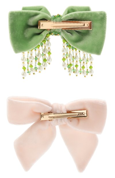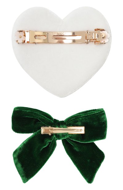 Заколку-автомат с отделкой из шелкового бархата украсили вышивкой в виде ландышей из бисера и бусин. В комплекте – бант без декора, фиксирующийся на волосах зубчатым зажимом.