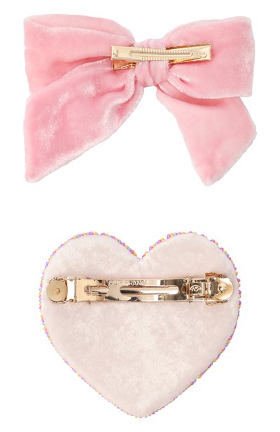 Бант из твила украсили вышитым изображением пасхального зайчика, аппликацией в виде бабочек и разноцветным бисером. Второй аксессуар меньшего размера изготовили из бархата. Оба изделия дополнили металлическими зажимами.