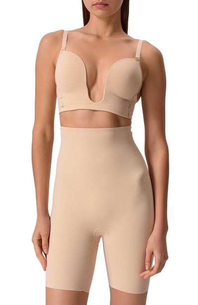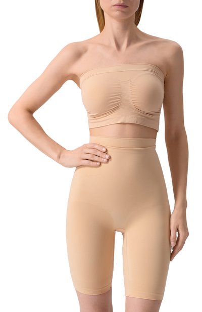 Корректирующие шорты Story с высокой посадкой выполнили из стрейчевого материала на основе полиамида. Модель с бесшовными краями дополнили хлопковой ластовицей.