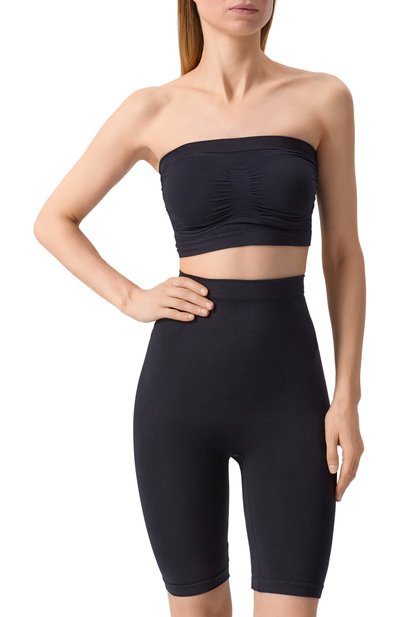 Корректирующие шорты Story Shaper с высокой посадкой выполнили из стрейчевого материала на основе полиамида. Модель с плоскими бесшовными краями дополнили хлопковой ластовицей.
