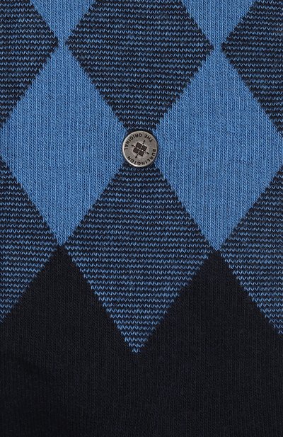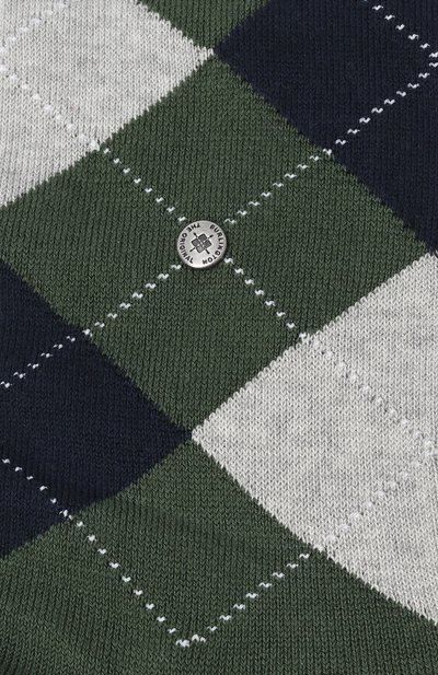 Высокие носки Manchester с узором аргайл связали из пряжи We Care на основе мерсеризованного органического хлопка. Паголенок модели с формованными пяткой и мысом дополнили фирменной фурнитурой. Технология One size fits all делает изделие подходящим для размеров с 40 по 46.