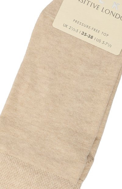 Для изготовления носков Sensitive London использовали пряжу We Care на основе хлопка. Модель анатомической конструкции под правую и левую стопы и плоскими швами дополнили широкой манжетой.