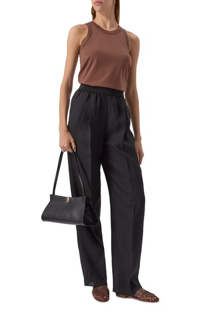Для изготовления модели в рубчик использовали стрейчевый трикотаж из хлопка и нейлона. Майка с круглым вырезом гармонично дополнит повседневный образ с рубашкой и джинсами.