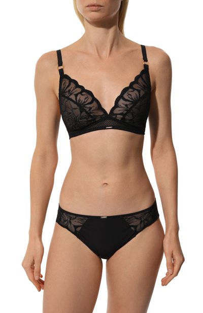 В коллекцию Into The Groove вошел бюстгальтер с треугольными чашечками на косточках. Модель из тюля с выш ивкой украсили золотистыми деталями в основаниях регулируемых бретелей и на перемычке.