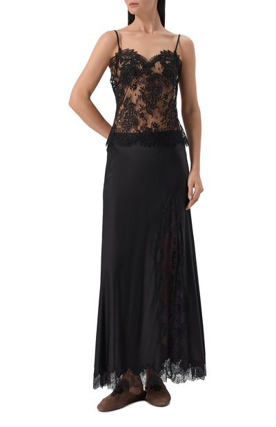 Топ из шелкового атласа вошел в коллекцию Baccarat. Модель с регулируемыми бретелями украсили цветочным кружевом, подчеркивающим глубокое декольте.