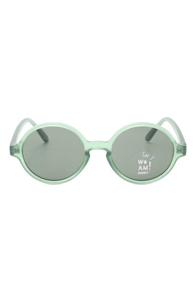 Солнцезащитные очки Woam оттенка Olive изготовили из полиэфира TPEE с покрытием Soft Touch. Левую дужку изделия украсили названием мо дели.