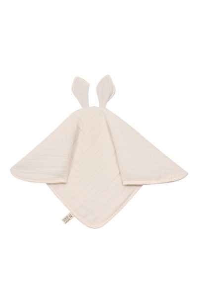 Комфортер-нагрудник Kangaroo выполнили из предварительно постиранных муслина и плюша на основе сертифицированного органического хлопка. Аксессуар с подвеской-кольцом и прорезным карманом для пустышки украсили аппликациями-ушками.