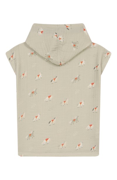 Пончо с регулируемым капюшоном сшито из хлопкового муслина. Модель, застегивающаяся кнопками по бокам, украшена брендированным ярлыком снизу.