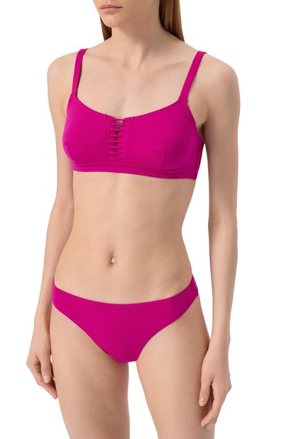 Бра из коллекции Hobby выполнили из эластичной нейлоновой микрофибры, сертифицированной Oeko-Tex®. Модель с рельефными полосками на широком поясе, регулируемыми бретелями и U-образным вырезом между чашечками застегивается сзади плоским брендированным замком.
