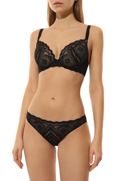 Бюстгальтер-балконет с фестончатыми краями вошел в коллекцию Vertige. Модель с мягкими чашечками на косточках и регулируемыми бретелями выполнили из стрейчевого кружева с добавлением хлопка.