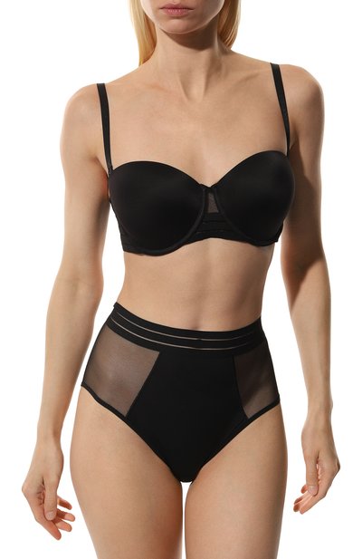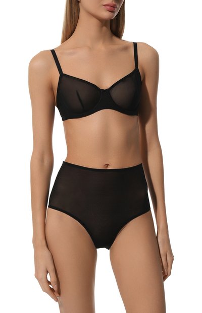Хипстеры со средней посадкой сшили из комбинации тюля и стрейчевой микрофибры. Трусы из коллекции Nufit дополнили хлопковой ластовицей и широким эластичным поясом.