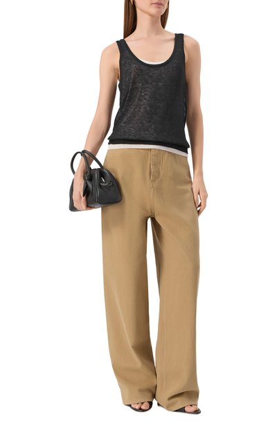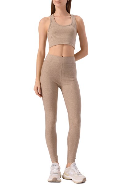 Бра-топ с Y-образной спинкой сшили из эластичного тенсела с добавлением шерсти. Модель составит гармоничный спортивный образ с парными легинсами.