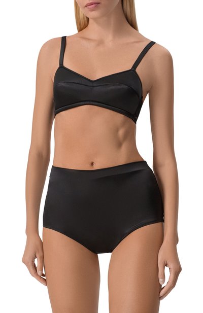 Мягкий бюстгальтер-бралетт Lombard Street сшили из эластичного шелкового атласа. На брендированных бретелях предусмотрели металлические слайдеры, а на поясе — застежку на крючок.