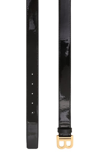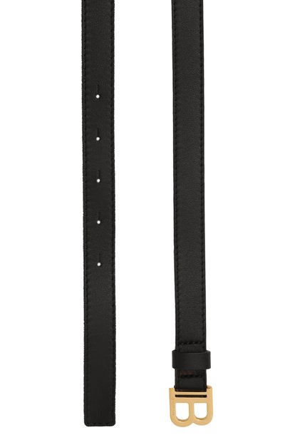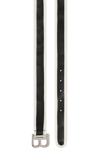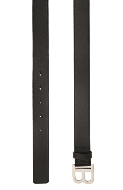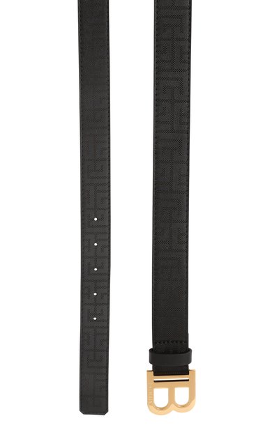 Ремень с контрастным брендированным паттерном выполнили из зернистой кожи. Аксессуар средней ширины застегивается кобурной пряжкой в форме эмблемы марки.