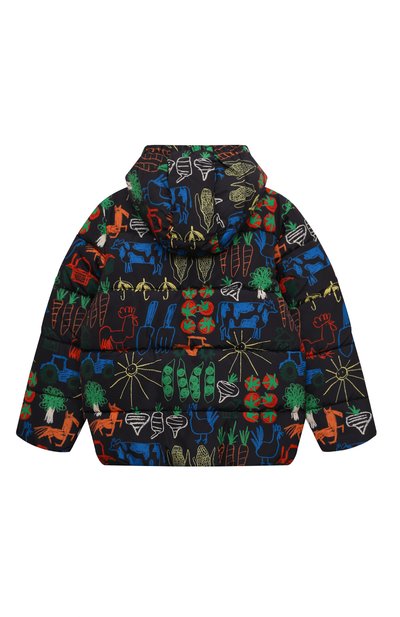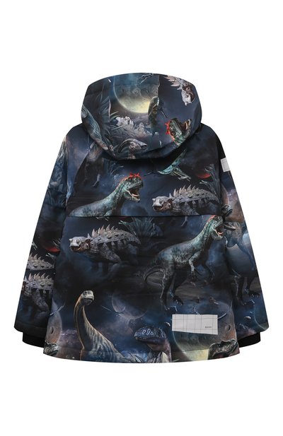 Утепленную куртку из влагоотталкивающего вторичного полиэстера украсили сплошным принтом Earth Friends. На рукавах и по низу предусмотрели резинки, а по бокам – врезные карманы. Модель на молнии дополнили подкладом из экомеха, отделав таким же материалом съемный капюшон.