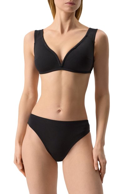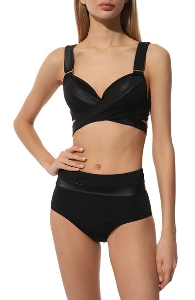 Плавки Snake River с завышенной посадкой выполнили из эластичной быстросохнущей микрофибры на основе нейлона. По бокам модель декорировали крупными люверсами с цепочкой, в которую вплели узкую ленту.