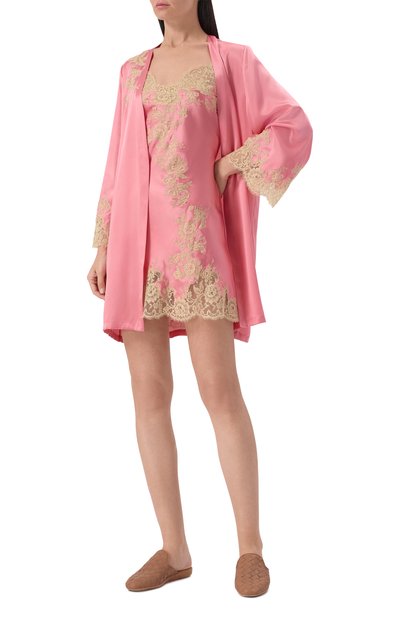 Сорочку Loulou выполнили из французского шелкового атласа с добавлением эластана. Модель с открытой спиной и регулируемыми бретелями украсили кружевными вставками, подчеркивающими линию декольте.