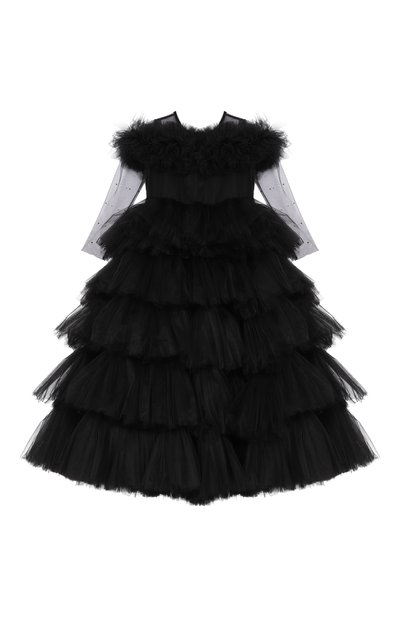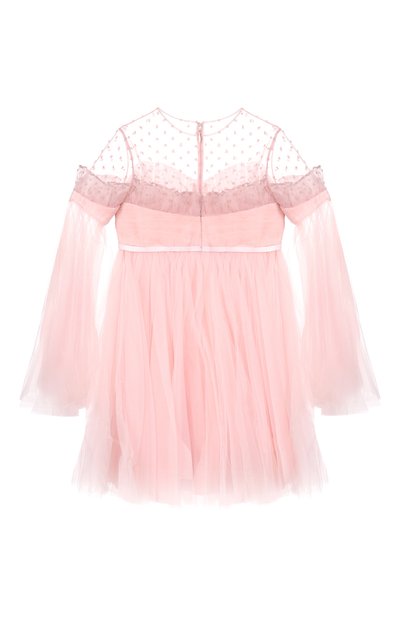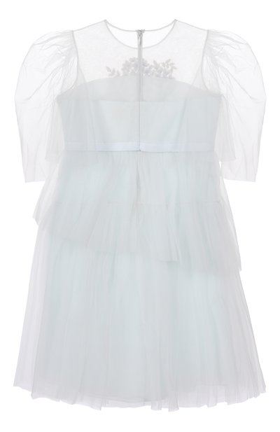 Платье Spring Couture с пышным подолом украсили объемной цветочной вышивкой с бусинами на лифе. Сзади модель из полупрозрачного тюля застегивается многочисленными пуговицами.