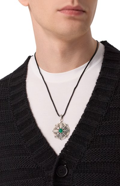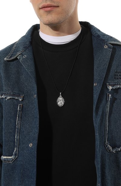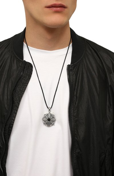 Для изготовления подвески использовали патинированное серебро 925-й пробы. Аксессуар дополнили плетеным кожаным шнуром.