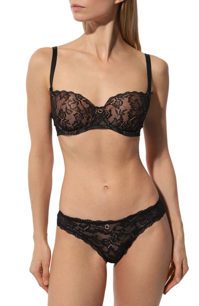 Слипы из линии Vibes выполнены из комбинации гладкого джерси и тюля с ажурной вышивкой. Спереди трусы со средней посадкой и хлопковой ластовицей украшены золотистой подвеской.