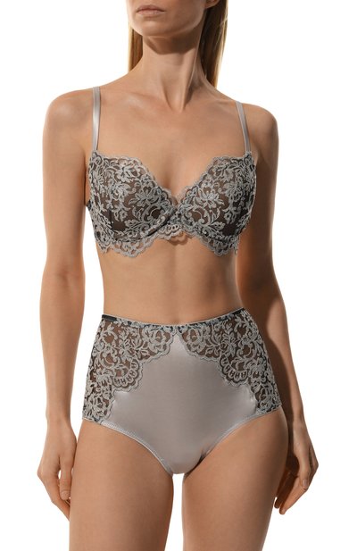 Бюстгальтер-балконет из коллекции Girls Love Diamonds выполнили из стрейчевого атласа и сетчатого тюля с цветочной вышивкой. Модель декорировали россыпью кристаллов Swarovski на мягких чашечках с косточками и дорожками из стразов на регулируемых брендированных бретелях.