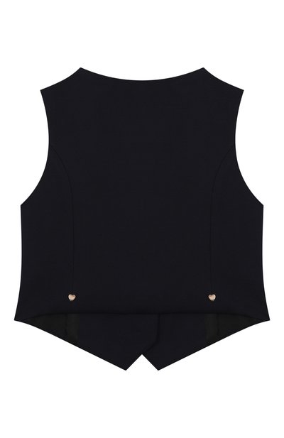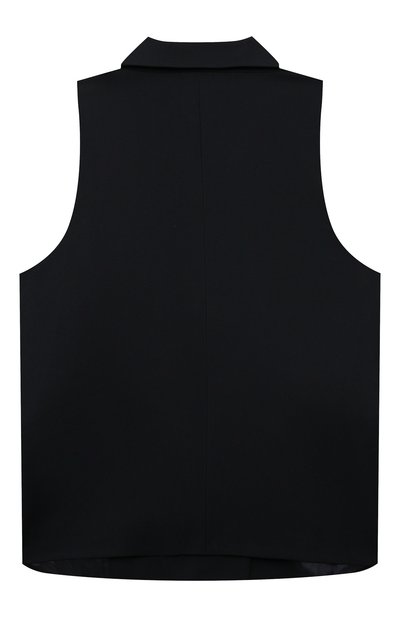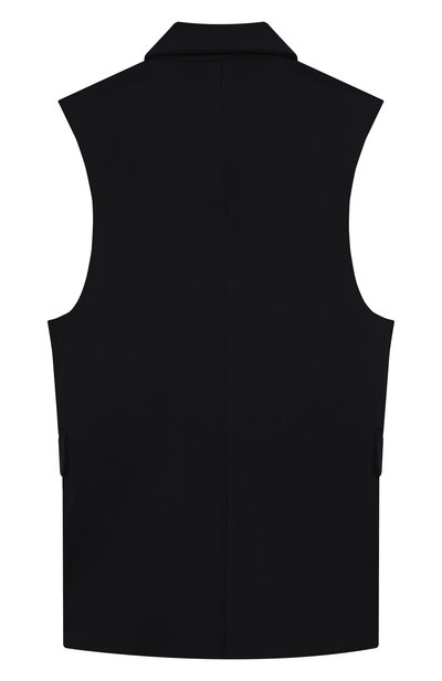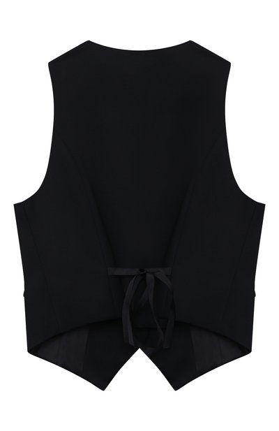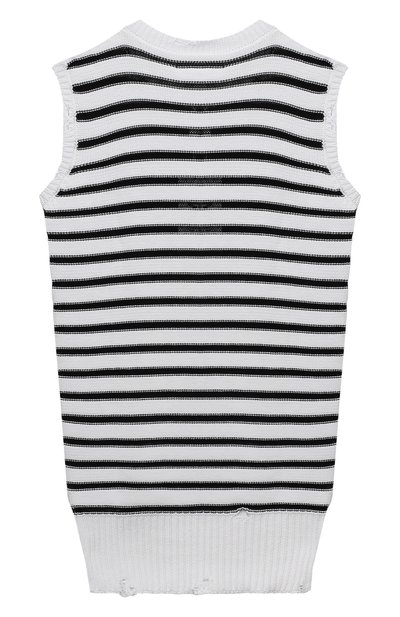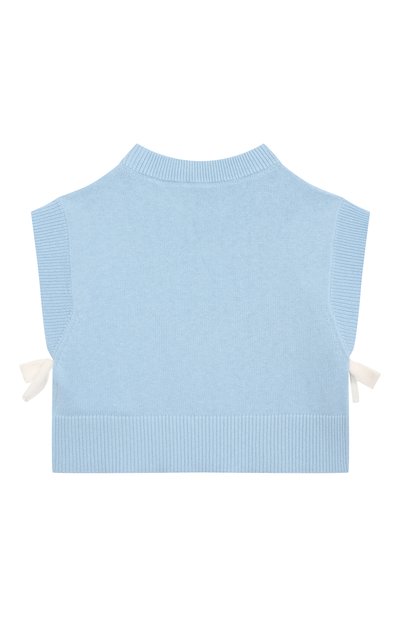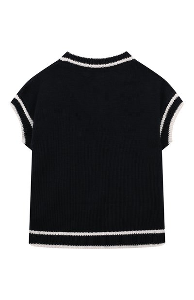 Жилет с арановым узором связали из пряжи на основе шерсти и хлопка. Пояс изделия, короткие рукава и V-образный вырез подчеркнули контрастным кантом, а спереди модель украсили вышитой в тон эмблемой марки.