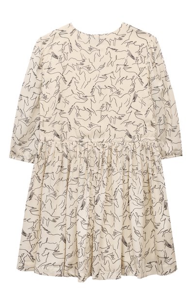 Платье Marisol свободного кроя выполнили из полупрозрачного тюля с цветочным принтом. Драпированная модель с манжетами-воланами, широкой оборкой на асимметричном подоле и круглой кокеткой на лифе застегивается пуговицами на спинке.