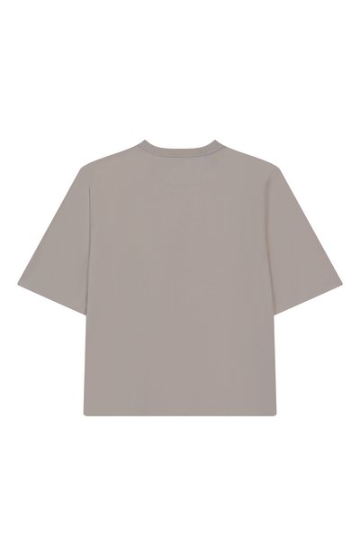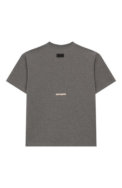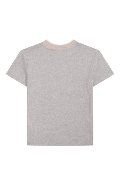 Футболку с круглым вырезом выполнили из меланжевого хлопкового джерси. Спереди модель прямого кроя декорировали брендированным принтом с вышивкой.