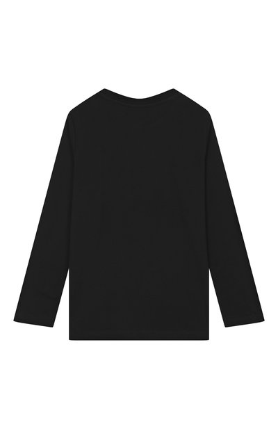 Лонгслив с брендированным принтом спереди выполнили из хлопкового трикотажа. Круглую горловину модели укрепили изнутри лентой в цветах фирменного триколора.