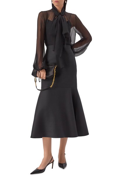 Юбка годе из шерстяной ткани застегивается потайной боковой молнией. Модель с хлопковым подкладом составит образ total black с парным топом.