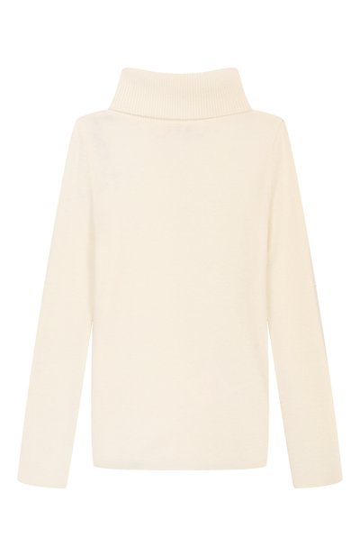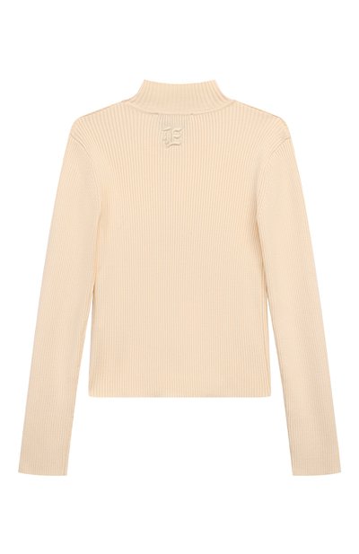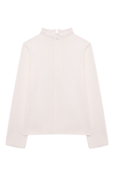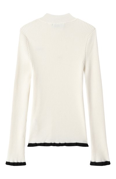 Водолазку на потайной молнии сзади выполнили из хлопкового трикотажа. Небольшой воротник-стойку у модели украсили кружевной оборкой в тон.