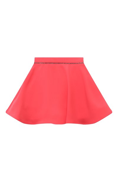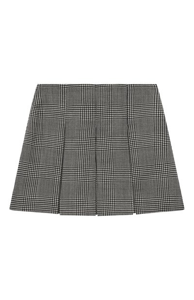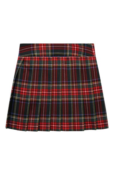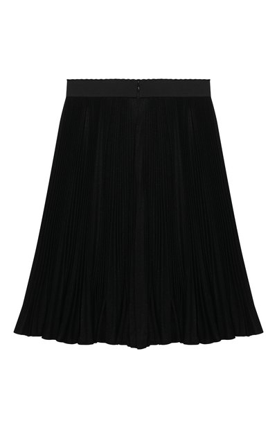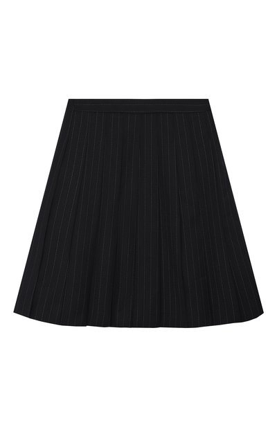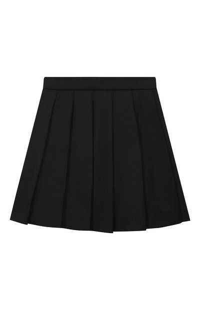 Для изготовления юбки в широкую встречную складку использовали твил из полиэстера. На кокетке с запахом, зафиксированным кожаным ремешком с пряжкой, модель декорировали вышитым логотипом и брендированными пуговицами.