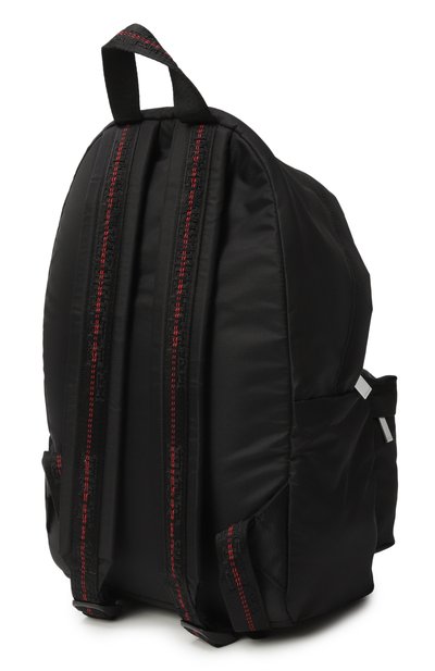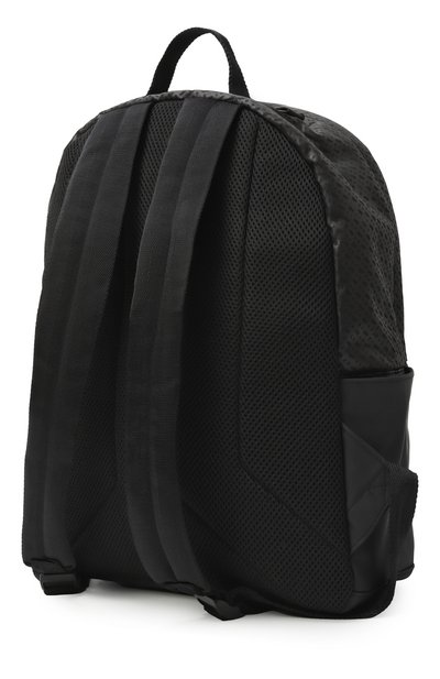Рюкзак из брендированного текстиля дополнили внешним карманом, украшенным контрастным патчем с размноженным логотипом. Основное отделение с отсеком для планшета застегивается молнией.