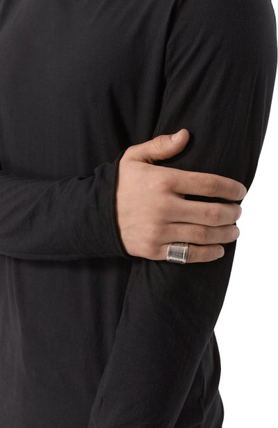 В коллекцию «Возрождение империи» вошло кольцо Gothic из черненого серебра 925-й пробы. Крес т в центре украшения подчеркнули гранатом круглой огранки и паве из фианитов. На внутренней стороне аксессуара выгравировали монограмму GL и слоган Freed to be yourself.