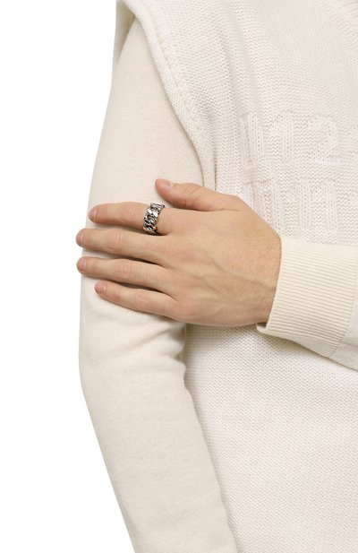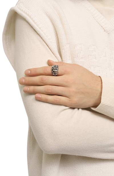 В коллекцию «Возрождение империи» вошло кольцо Gothic из черненого серебра 925-й пробы. Крест в центре украшения подчеркнули гранатом круглой огранки и паве из фианитов. На внутренней стороне аксессуара выгравировали монограмму GL и слоган Freed to be yourself.