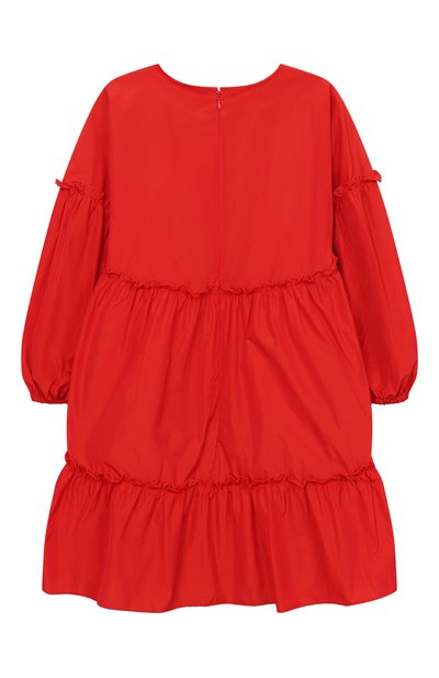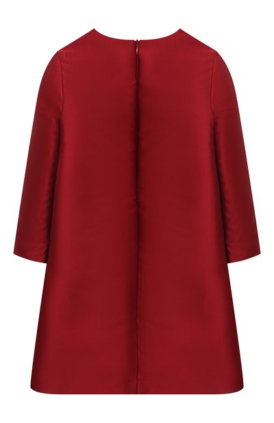 Платье с подчеркнутым оборкой разрезом-сердцем на груди выполнили из вискозного трикотажа, а драпированный подол – полиэстера. Модель зас тегивается потайной молнией сзади.