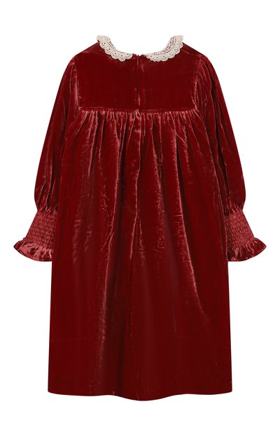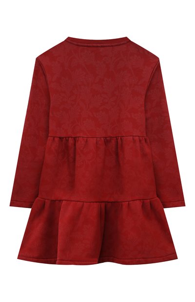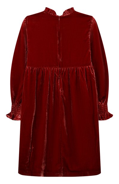 Платье с подчеркнутым оборкой разрезом-сердцем на груди выполнили из вискозного трикотажа, а драпированный подол – полиэстера. Модель застегивается потайной молнией сзади.