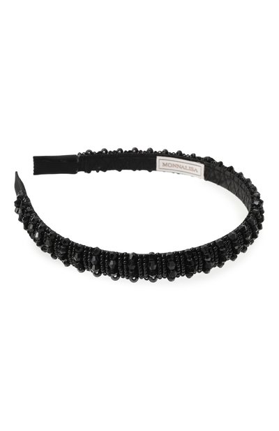 Вышитый бисером и бусинами ободок украсили металлической брендированной подвеской в форме сердца. Гибкую пластиковую основу аксессуара обтянули полиэстером.