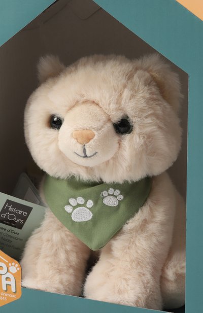 Плюшевый котенок в домике-коробке вошел в коллекцию Welcome Home, созданную совместно с французской ассоциацией защиты животных SPA. Игрушку с мягким наполнителем из полиэстера нарядили в косынку с вышитыми следами лап, которой вторит брелок с символикой благотворительной организации.