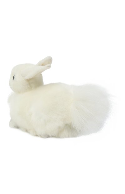 Кролик-комфортер с вышитыми глазами и носом выполнен из экомеха на основе полиэстера. Лапки и уши игрушки подчеркнули канвасом, а на шею повязали несъемный хлопковый бант с брендированным принтом.