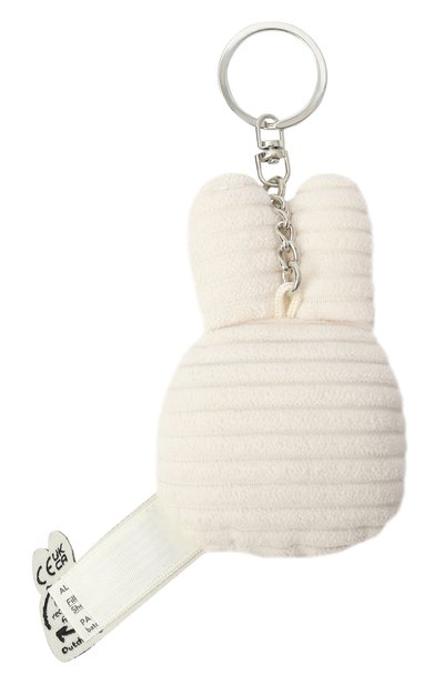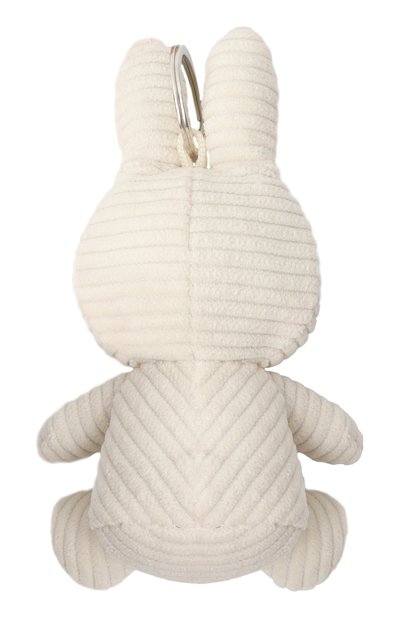 Брелок в виде зайчонка Miffy выполнили из бархатистого вельвета на основе переработанных материалов. Аксессуар с легким наполнителем из вторичного полиэстера дополнили разъемным кольцом из серебристого металла.