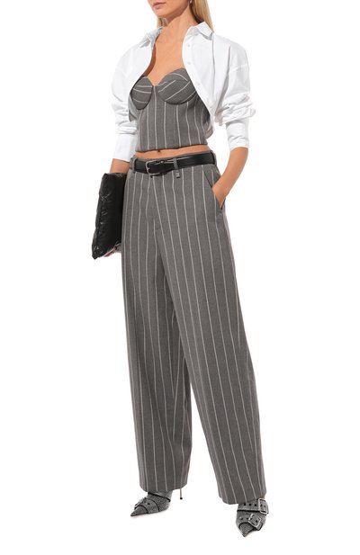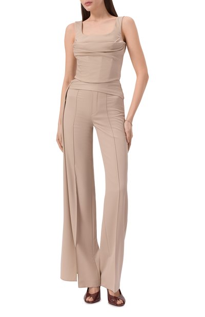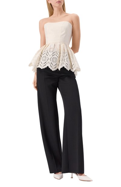 Топ-корсет Holy Passion в викторианском стиле сшили из вискозы с цветочными узорами. Модель с чашками на косточках, шнуровками и подвязками для чулок застегивается молнией сзади.