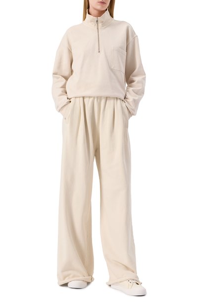 Свитшот Meggi из стрейчевого трикотажа на основе хлопка, модала и полиамида дополнили стеганой вставкой спереди. Снизу предусмотрели кулиску, закрепив над ней фирменную эмблему B-signe. Декору вторит пуллер молнии на высокой горловине.