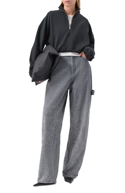 Свитшот Meggi из стрейчевого трикотажа на основе хлоп ка, модала и полиамида дополнили стеганой вставкой спереди. Снизу предусмотрели кулиску, закрепив над ней фирменную эмблему B-signe. Декору вторит пуллер молнии на высокой горловине.